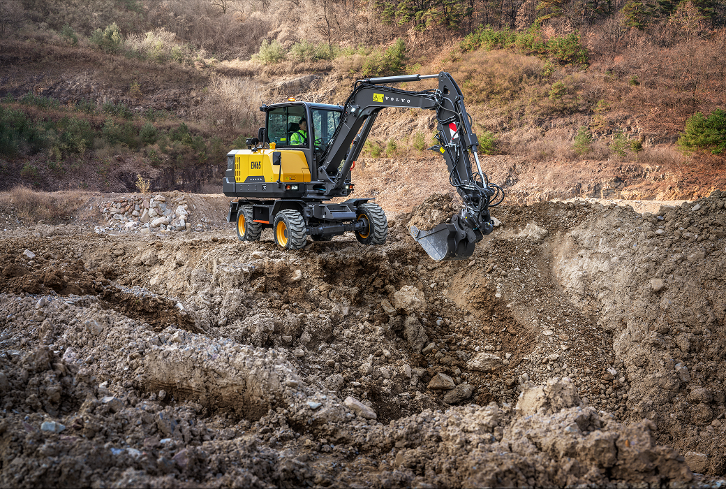 ה-EW65 הוא כלי רב-תכליתי, המציע את הגמישות של מחפר זחלי קומפקטי עם היתרון המשמעותי של ניידות אופנית מהירה